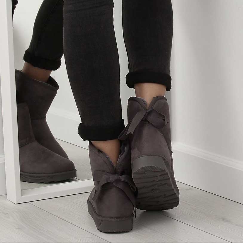 Ghetele Alle sunt alegerea perfectă pentru zilele foarte reci de iarnă – sunt extrem de călduroase iar talpa acestora este confecționată dintr-un material de calitate care nu alunecă. Ghetuțele au în partea din spate o fundiță elegantă iar interiorul este căptușit cu o blană groasă și foarte călduroasă, de culoare gri închis. Partea exterioară are aspect de piele întoarsă ce împiedică absorbția apei.